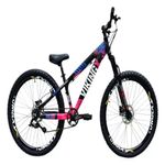 Bicicleta Vikingx Preto Rosa Aro 26 Single Wheeling Freio Hidráulico- Foto Meramente Ilustrativa- Marca: VikingX- Quadro AlumínioIdade recomendada: Juvenil/Adulto- Gênero: Unissex- Aro: 26- Velocidades: Single- Garfo: Suspensão Mecânica- Guidão: Aço carbono Mtb- Freios: Disco Hidraulico- Rodas:Vmaxx- Câmbio: Traseiro Importados- Manoplas: Mtb Simples- Corrente: Index- Selim: BMX- Pedivela: Single GTS- Pneus: Mtb com cravo, CONFORME NOSSO ESTOQUE DISPONIVEL- Pedal: Plástico MtbModelo da bicicleta: MtbOBSERVAÇÕESPode haver alguma diferença de tonalidade entre a imagem e o produto real, por conta do tratamento de imagens e a calibração de cores do monitor.MONTAGEMEnviamos a bicicleta pré-montada, revisada e devidamente embalada, para melhor se acomodar na embalagem de transporte são retirados apenas: selim, pedais, guidão e roda dianteira.O custo da montagem é de responsabilidade do cliente.Por motivo de transporte e manuseio, é necessário efetuar uma nova regulagem de câmbio ao receber o produto.Não nos responsabilizamos pela revisão final da bicicleta, sugerimos que seja efetuada por uma oficina especializada.GARANTIANÃO COBRE DEFEITOS POR MAU USO OU PELA MONTAGEM, REGULAGEM DE CÂMBIOS OU REVISÃO INADEQUADA DO PRODUTO.A garantia será validada para as bicicletas montadas e revisadas por uma oficina especializada e é referente apenas ao primeiro proprietário.A garantia não se aplica para os itens de desgaste natural, tais como: Pneu, câmaras, cabos, sapatas ou pastilhas de freio, centragem de aros, pintura do quadro, componentes da transmissão (câmbios, corrente,