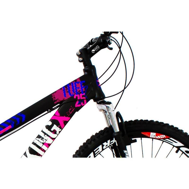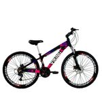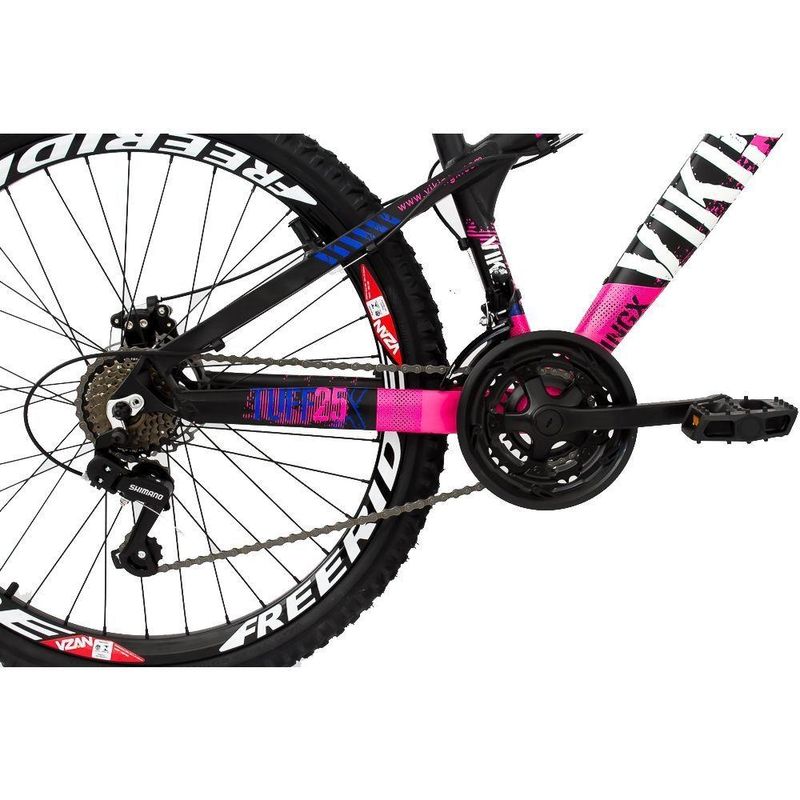 Bicicleta X TUFF25 Freeride Aro 26 Freio a Disco 21 Velocidades Câmbios Shimano Preto Rosa VikingFoi projetada para quem quer uma bike de personalidade e estilo inigualável. Ela oferece ao ciclista quadro diferenciado e design arrojado e exclusivo. Com qualidade, ela vem equipada de com 21 velocidades, permitindo ao ciclista a escolha da marcha ideal de acordo com o . O design moderno pode ser observado no quadro da bike e os pneus são confeccionados em MTB com aro 26, garantindo total a cada manobra em qualquer tipo de terreno.Especificações Técnicas- Marca: Viking- Modelo: MTB Freeride- Coleção/Sortimento: 2016- Idade Recomendada: Juvenil/Adulto- Gênero: Unissex- Aro: 26- Quadro: Alumínio- Marcha: 21 Marchas- Garfo: Suspensão- Guidão: Aço carbono MTB- Freios: Disco- Rodas: Freeride- Câmbios: Shimano- Manoplas: MTB- Corrente: Index- Selim: WG- Trocador: Rapid fire- Pedivela: - Pneus: MTB 26"- Pedal: Plástico MTB- Conteúdo da Embalagem: 1 Bicicleta, Manual de Instruções- Dimensões aproximadas do produto (AxLxP): 109 x 68 x 165cm- Garantia: 3 meses