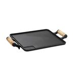 Bifeteira de Ferro Fundido Quadrada Alça Madeira 25x25cm A bifeteira quadrada é confeccionada em ferro fundido de alta qualidade, é muito utilizada por bares e restaurantes para servir diversas porções por serem resistentes, bonitas e manter-se aquecidas por muito tempo. Ideal para o preparo de carnes, pães, ovos, hambúrgueres e etc. Muito prática de usar no dia a dia podendo ser colocada em cima de uma tabua de madeira para servir comida quente e fresca. Pode ser usada diretamente na churrasqueira, chama do fogão a gás, a lenha e elétrico. Especificações Técnicas: Material: Ferro fundido. Medidas: 25X25cm. Peso: 5,100Kg. Altura: 1,5cm. Itens Inclusos: 01 Bifeteira de Ferro Fundido Quadrada Alça Madeira 25x25cm. Código: 0977-RIG. Produto plataforma Plast.