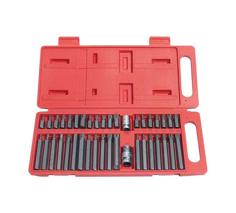 BITS AUTOMOTIVO JOGO 40 PEÇAS - Dimensões da Peça: - 18 Chaves: 7,4 x 1,1 x 1,1cm - 1 Chave: 7,4 x 1,3 x 1,3cm - 18 Chaves: 3 x 1,1 x 1,1cm - 1 Chave: 3 x 1,3 x 1,3cm - 1 Adaptador: 3,9 x 2,1 x 2,1cm - 1 Adaptador: 2,9 x 1,7 x 1,7cm - Maleta: 32,5 x 14 x 3,8cm - Dimensões da Embalagem: 32,5 x 14 x 4cm - Quantidade Master: 10 Peças - Dimensões Master: 33 x 29,5 x 20cm - Material: Aço cromo vanádio, Aço carbono - Cor: - Maleta Laranja - Chaves Grafite - Adaptadores Prata - Tipo de Embalagem: Caixa Plástica - Marca: Western - Origem: China Jogo contendo: - 19 Bits curtos - 19 Bits longos - 2 Adaptadores - 1 Maleta - Medidas: - Bits longos 75 mm: 7 Allen® (Hexagonal): 4mm - 5mm - 6mm - 7mm - 8mm - 10mm - 12mm. 5 Multidentada: M5 - M6 - M8 - M10 - M12. 7 Torx®: T20 - T25 - T30 - T40 - T45 - T50 - T55 - Bits curtos 30 mm: 7 Allen® (Hexagonal): 4mm - 5mm - 6mm - 7mm - 8mm - 10mm - 12mm. 5 Multidentada: M5 - M6 - M8 - M10 - M12. 7 Torx®: T20 - TGarantia do produto: 90 dias de garantia de acordo com o Código de Defesa do Consumidor + a Garantia do Fabricante