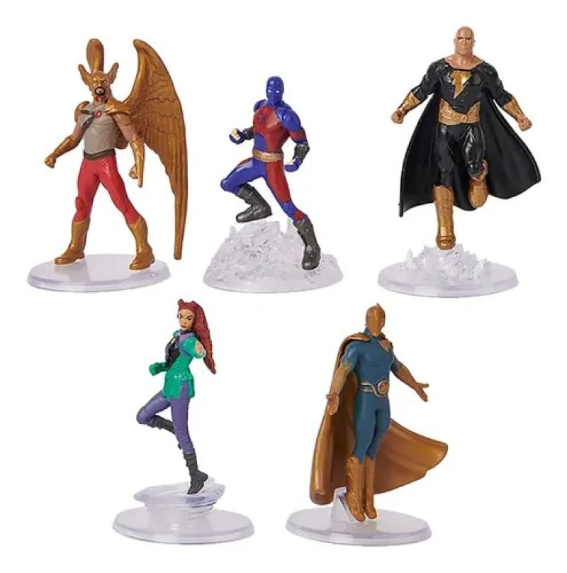Black Adam Adão Negro DC - Conjunto Set Com 5 Figuras 6 cm - Sunny A Sociedade da Justiça é um grupo de super-heróis pertencente à DC Comics e foi o primeiro grupo de super-heróis a aparecer historicamente nas Histórias em Quadrinhos. Na versão de 6 cm fiéis à característica do filme, ricos em detalhes, composto por Black adam, Hawkman, Dr. fate, Atom Smasher e Cyclone. Cada personagem vem com sua própria base. Idade acima de 3 anos Contem 5 figuras Tamanho da embalagem 21 x 18 x 4 cm Fabricante Sunny