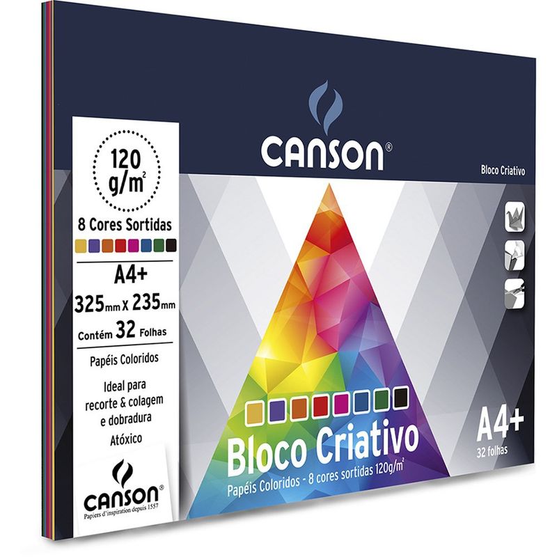 ***AVISO: ESTAMOS TRABALHANDO NORMALMENTE COM TODOS ITENS COM ENVIO IMEDIATO***Características do Produto• A linha de blocos coloridos da canson conta com papéis coloridos na massa de tons fortes e vibrantes , que além de não deixar vincos brancos são mais resistentes ao desbotamento e não soltam tinta.• São perfeitos para artesanato e para uso escolar como desenhos , trabalhos manuais , origamis , esculturas e recorte & colagem. Papel colorido ideal para recorte, colgem e dobradura - 120g/m2 - 32 folhas - 8 cores - livre de ácido - não amarela - atóxico