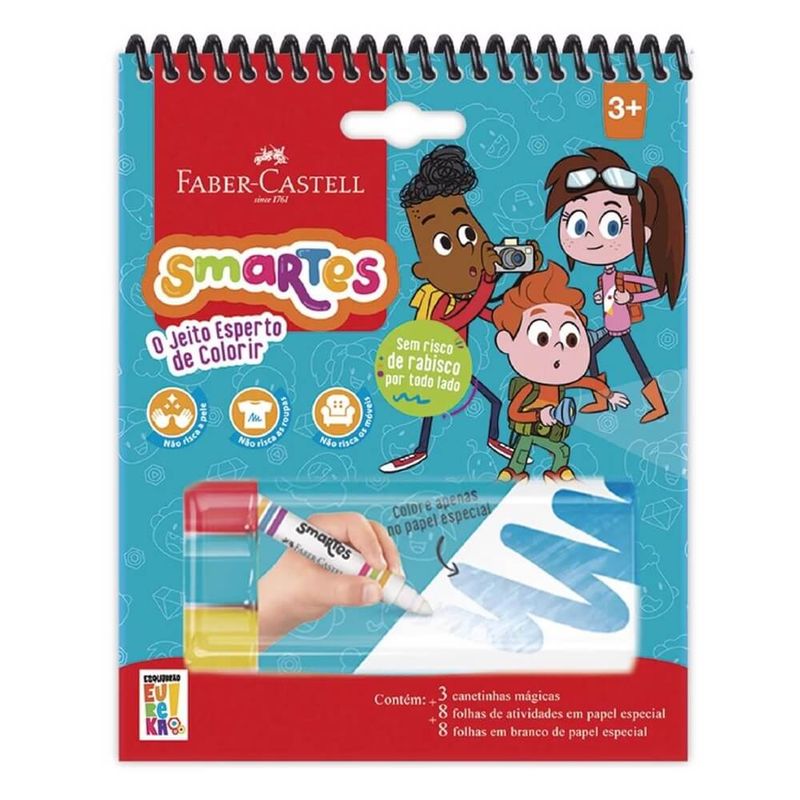 Bloco de Atividades Para Colorir Smartes Eureka (755910) - Faber-CastellO Bloco de Atividades Para Colorir Smartes Eureka Faber-Castell é magico e colorido, é para você que ama ver as crianças felizes e entretidas com alguma atividade criativa, que estimula a imaginação, concentração, coordenação motora. Este kit encantador é um convite irresistível para proporcionar momentos de alegria e diversão às crianças, as cores ganham vida de forma mágica no papel especial, proporcionando uma experiência única de colorir nesse universo encantado. As crianças se surpreendem com as cores que só aparecem no próprio papel e se divertem sem riscos, sem sujeira e em qualquer lugar. Detalhes:- Contém 3 canetinhas mágicas + 8 folhas de atividades + 8 folhas em branco.- Não risca as roupas, nem a pele e não risca os móveis- Composição da tinta: água, corantes e aditivos- Composição do corpo e tampa: resinas termoplásticas- Composição da ponta: poliéster sinterado- Dimensões: 21 x 14,3 x 18,4 cm As tonalidades de cores podem variar de acordo com as configurações de seu monitor ou celular, as imagens são meramente ilustrativas.