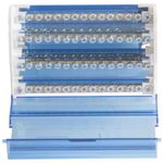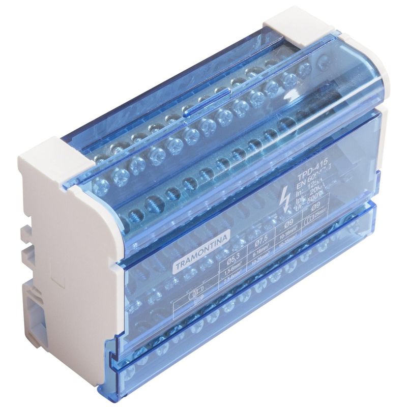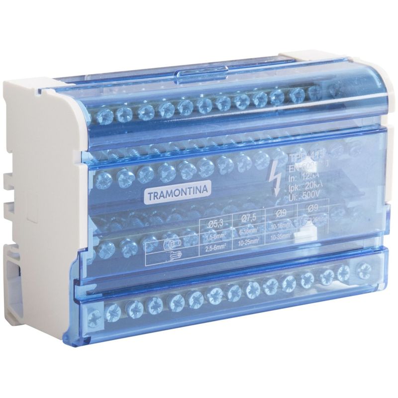 Bloco de Distribuição Tramontina 125A 4 Pólos com 15 Conexões Tramontina - Bloco de Distribuição Tramontina 125A 4 Pólos com 15 Conexões O bloco de distribuição Tramontina 125A 4 pólos com 15 conexões é a solução ideal para quadros elétricos complexos que exigem alta capacidade de ligação. Com até 125A de suporte, ele oferece 15 conexões para facilitar a distribuição e organização dos cabos nos painéis. Fabricado em termoplástico retardante de chamas, ele proporciona segurança e durabilidade, sendo indicado para ambientes industriais e comerciais. A instalação em trilho DIN é prática e rápida, otimizando o tempo de montagem. 125A 4 Pólos com 15 Conexões. Cuidados com o produto à importante que o produto seja instalado por um profissional qualificado. Desligar a energia elétrica antes de fazer a instalação. Garantia 1 ano e 06 meses (90 dias de garantia legal acrescidos de 01 ano e 03 meses de garantia contratual) para vÃcios ou defeitos de fabricação. - - Características Gerais do Produto: Garantia: • 1 Ano