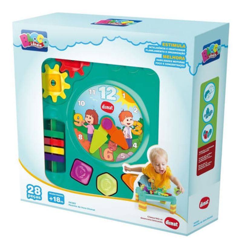 Blocos de Encaixe - Mesinha da Hora Verde - Blocolandia - MK383 - DISMATBlocos de Encaixe - Mesinha da Hora Verde - Blocolandia - MK383 Possui regulagem de altura de acordo com a montagem dos blocos Com blocos em formas geométricas para encaixar desenvolve a coordenação motora Contém um relógio com ponteiros móveis e blocos adesivados que formam animais estimulando a inteligência e a criatividadeEste brinquedo é fabricado com plástico de alta qualidade, com cores atrativas e divertidas estimulando a inteligência e a criatividade e a melhora das habilidades motoras, foco e concentraçãoDetalhes: Certificação: Certificado Pelos Órgãos Autorizados - OCP`S(Organismos De Certificação De Produtos) Registro: 004699/2021 OCP 0006 Características: Conteúdo da Embalagem: 28 Peças Material/Composição: Plástico Código de Barras: 7896497503925 Ref: MK383 Marca: Dismat Modelo: Mesinha da Hora Idade Indicada: + 18M Aviso: As cores podem variar entre as imagens mostradas acima e o produto Imagens meramente ilustrativas Garantia: 3 Meses Contra Defeito de Fabricação