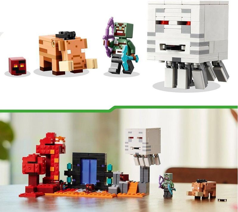 Blocos de Montar - Minecraft Emboscada do Portal do Nether - M BRINQOs fãs que gostam das aventuras vão adorar este modelo de cena de batalha ambientado no Nether com um elenco icônico de mobs do Minecraft O kit de montagem inclui um cenário do portal do nether, a minifigura do guerreiro Orc, 2 cubos de magma, figuras montáveis de Ghast e Hoglin e acessórios O cenário mede 11 cm de altura, 22 cm de largura e 14 cm de profundidade Detalhes: Certificação: Certificado Pelos Órgãos Autorizados - OCP`S(Organismos De Certificação De Produtos) Registro:005 828/2021 OCP0061Características: Conteúdo da Embalagem: 352 Peças Material/Composição: Plástico Ref: 21255 Marca: Lego Modelo: Blocos de Montar Linha: Minecraft Idade Indica: 8+ Código de Barras: 0673419388498 Aviso: As cores podem variar entre as imagens mostradas acima e o produto Imagens meramente ilustrativasGarantia: 03 Meses Contra Defeito De Fabrica