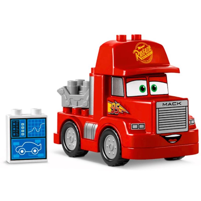 Turbine as brincadeiras para fãs de veículos pré-escolares com 2 anos ou mais com este brinquedo infantil para construir e brincar Mack at the Race (10417), inspirado nos filmes Carros da Disney e Pixar e apresentando um grande caminhão de brinquedo vermelho para construir. As crianças ajudam Mack, o caminhão, a preparar todas as peças para quando Relâmpago McQueen chegar para um pitstop. Eles podem ajustar seu novo motor com o elemento de chave inglesa. Em seguida, eles podem ajudar Mack a verificar as estatísticas de Lightning no elemento do computador para garantir que o carro de corrida esteja em perfeitas condições para vencer o grupo. Especificações Técnicas Marca: Lego Referência: 10417 Possui Luzes: Não Possui Sons: Não Número de peças: 14 Idade Mínima: 2 Dimensões aproximadas da embalagem: 26 x 19 x 9 cm Ean: 673419388771