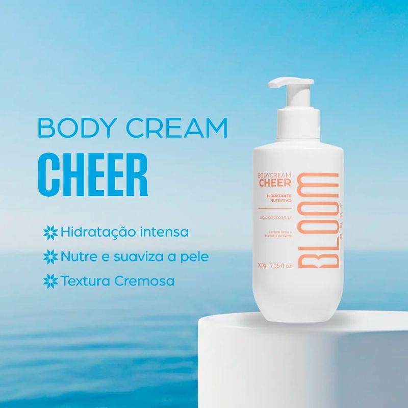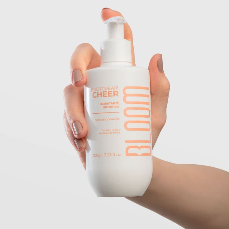 Bloom Body DSD Hid Cor Body Cream Cheer é um hidratante corporal cremoso e perfumado desenvolvido para nutrir profundamente a pele enquanto a deixa irresistivelmente macia, suavemente perfumada e com toque aveludado. Sua formulação rica combina manteiga de karité, ureia, óleo de amêndoas doces, glicerina vegetal e vitamina E, ativos conhecidos por promoverem hidratação intensa, restaurarem a elasticidade e protegerem a pele contra ressecamento, tudo com absorção rápida e sem sensação oleosa. Com fragrância doce, floral e envolvente, este body cream proporciona perfumacao sofisticada e duradoura, ideal para uso diario, especialmente apos o banho. Bloom Body DSD Hid Cor Body Cream Cheer transforma o cuidado corporal em um ritual de autocuidado luxuoso, deixando a pele nutrida, parfumada e com sensacao de conforto prolongado. Caracteristicas: Marca: Bloom Body Linha: DSD Hid Cor Categoria: Body Cream Versao: Cheer 200g Beneficios: hidratacao profunda, nutrição intensa, toque aveludado e perfumacao sofisticada Ingredientes Principais: manteiga de karité, ureia, óleo de amêndoas doces, glicerina vegetal, vitamina E e fragrância Bloom Modo de Aplicacao: Aplique sobre a pele limpa e seca, espalhando com movimentos suaves ate completa absorcao. Pode ser usado diariamente, especialmente apos o banho, para manter a pele hidratada e perfumada ao longo do dia. Especificacoes do Produto: Tipo de Produto: hidratante corporal perfumado Volume: 200g Textura: cremosa e de rapida absorcao Ativos Principais: manteiga de karité, ureia, óleo de amêndoas doces, glicerina vegetal e vitamina E Beneficios do Produto: Eficacia: proporciona hidratacao profunda e toque sedoso sem sensacao oleosa. Durabilidade: fragrancia envolvente que permanece perceptivel ao longo do dia. Versatilidade: indicado para todos os tipos de pele, inclusive as mais sensiveis. Design ou Praticidade: embalagem de 200g pratica para uso diario ou rotina de autocuidado. Bloom Body DSD Hid Cor Body Cream Cheer é ideal para quem deseja pele macia, nutrida e delicadamente perfumada, elevando a rotina de cuidado corporal com hidratação intensa e aroma sofisticado.