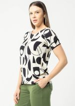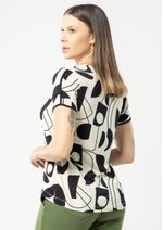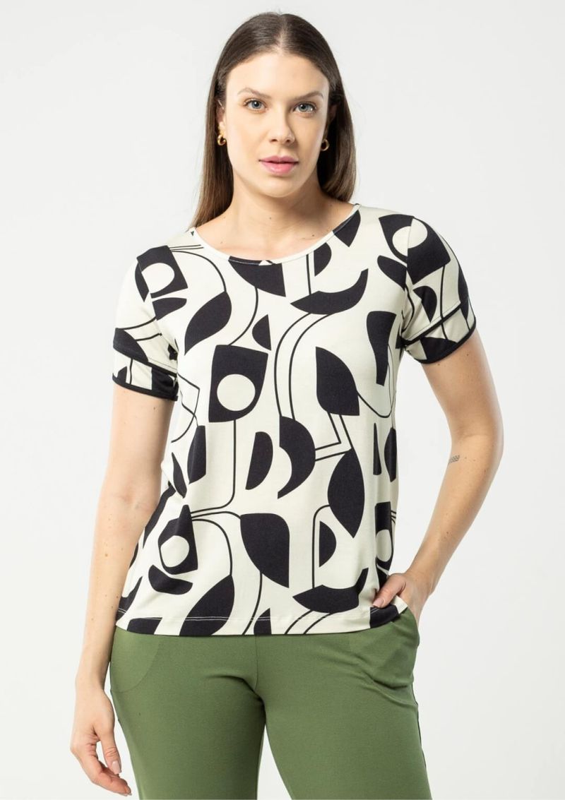 Blusa manga curta e decote redondo. Estampada em Preto sobre o fundo Off White. Mangas possuem recorte e acabamento em vivo Preto trazendo mais elegância ao modelo. Estampa super moderna e despojada. Aproveite!!! Composição da malha: Confeccionado em 96% Viscose e 4% Elastano. Medidas Aproximadas: P: 62cm Comprimento x 90cm Busto x 94cm Cintura x 100cm Quadril. M: 64cm Comprimento x 96cm Busto x 100cm Cintura x 106cm Quadril. G: 66cm Comprimento x 102cm Busto x 106cm Cintura x 112cm Quadril. GG: 68cm Comprimento x 108cm Busto x 112cm Cintura x 118cm Quadril. XL: 70cm Comprimento x 114cm Busto x 118cm Cintura x 124cm Quadril. Todos os dados informados são aproximados, do peso às medidas. ATENÇÃO para as medidas, modelagem ampla. *Modelo está usando o tamanho P*