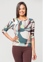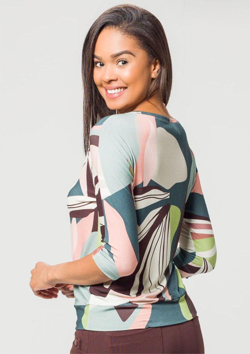 Blusa mangas 3/4 com decote redondo. Estampada em varias tonalidade com predominância da cor Verde. Possui punho na barra no mesmo tecido da peça. Moderna, despojada e elegante . Arrase! Composição da malha: Confeccionado em 96% Viscose e 4% Elastano. Medidas Aproximadas: P: 60cm Comprimento x 94cm Busto x 88cm Cintura x 92cm Quadril. M: 62cm Comprimento x 100cm Busto x 94cm Cintura x 98cm Quadril. G: 64cm Comprimento x 106cm Busto x 100cm Cintura x 104cm Quadril. GG: 66cm Comprimento x 112cm Busto x 106cm Cintura x 110cm Quadril. XL: 68cm Comprimento x 118cm Busto x 112cm Cintura x 116cm Quadril. Todos os dados informados são aproximados, do peso às medidas. ATENÇÃO PARA AS MEDIDAS. MODELAGEM AMPLA.