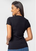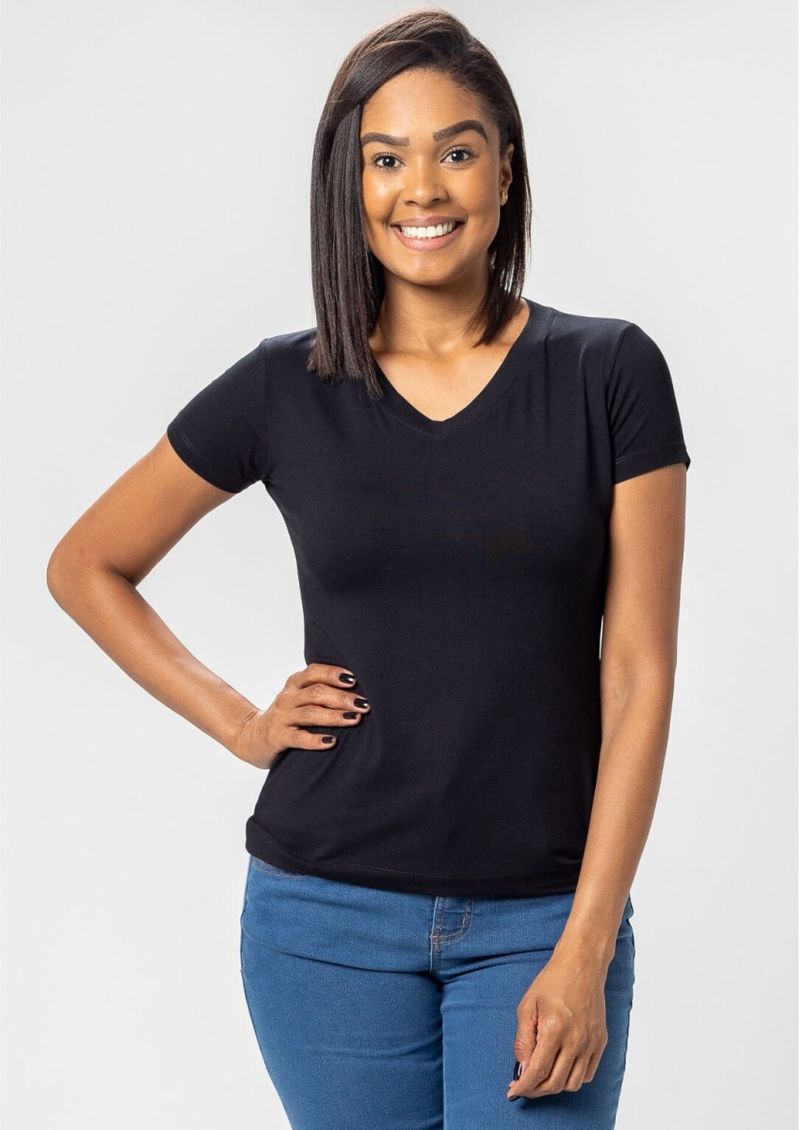 Blusa feminina construída em Viscolycra, na cor Preto. Malha leve, confortável, ótima elasticidade e caimento incrível. Mangas curtas e decote em "V". Básica e moderna, compõe diversos looks despojados! Composição da malha: Confeccionado em 96% Viscose e 4% Elastano. Medidas Aproximadas: P: 61cm Comprimento x 84cm Busto x 80cm Cintura x 94cm Quadril. M: 63cm Comprimento x 90cm Busto x 86cm Cintura x 100cm Quadril. G: 65cm Comprimento x 96cm Busto x 92cm Cintura x 106cm Quadril. GG: 67cm Comprimento x 102cm Busto x 98cm Cintura x 112cm Quadril. XL: 69cm Comprimento x 108cm Busto x 104cm Cintura x 118cm Quadril. Todos os dados informados são aproximados, do peso às medidas. ATENÇÃO: Para as medidas, pois nossa modelagem é ampla! *Modelo está usando o tamanho P*