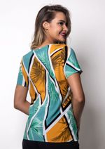 Blusa com decote redondo composto por abertura e amarração. Mangas curtas e barra com pequenas fendas laterais. Malha da blusa estampada em tons de Mostarda e Verde. Moderna, confortável e fresquinha. Arrase! Composição da malha: Confeccionado em 100% Viscose. Toque macio. Sem Elasticidade. Medidas Aproximadas: P: 64 x 94 x 92 x 98 cm (Comprimento, Busto, Cintura e Quadril). M: 66 x 100 x 98 x 104 cm (Comprimento, Busto, Cintura e Quadril). G: 68 x 106 x 104 x 110 cm (Comprimento, Busto, Cintura e Quadril). GG: 70 x 112 x 110 x 116 cm (Comprimento, Busto, Cintura e Quadril). XL: 72 x 118 x 116 x 122 cm (Comprimento, Busto, Cintura e Quadril). Todos os dados informados são aproximados, do peso às medidas.