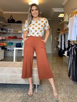 Blusa com decote redondo e mangas curtas. Malha da blusa estampada, sobre o fundo Cru. Detalhe nas costas . Modelagem soltinha ao corpo. Possui detalhe de abertura nas costas. Moderna e confortável compõem diversos looks despojados. Arrase! Composição da malha: Confeccionado em 100% Viscose. Toque macio. Sem Elasticidade. Medidas Aproximadas: P: 64 x 106 x 106 x 114 cm (Altura, Busto, Cintura e Quadril). M: 66 x 112 x 112 x 120 cm (A, B, C, Q). G: 68 x 118 x 118 x 126 cm (A, B, C, Q). GG: 70 x 124 x 124 x 132 cm (A, B, C, Q). XL: 72 x 130 x 130 x 138 cm (A, B, C, Q). Todos os dados informados são aproximados, do peso às medidas. ATENÇÃO PARA AS MEDIDAS, POIS NOSSA MODELAGEM É AMPLA.