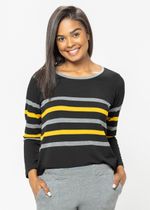 Blusa com decote redondo e mangas longas. Malha Listrada em tons de Preto, Cinza e Amarelo. Modelagem soltinha ao corpo. Elegante, confortável e despojada!!! Permita-se! Composição da malha: Confeccionada em 95% Viscose e 5% Elastano. Construído em "viscolycra", com toque macio. Medidas Aproximadas: P: 64cm Comprimento x 94cm Busto x 96cm Cintura x 102cm Quadril. M: 66cm Comprimento x 100cm Busto x 102cm Cintura x 108cm Quadril. G: 68cm Comprimento x 106cm Busto x 108cm Cintura x 114cm Quadril. GG: 70cm Comprimento x 112cm Busto x 114cm Cintura x 120cm Quadril. XL: 72cm Comprimento x 118cm Busto x 120cm Cintura x 126cm Quadril. Todos os dados informados são aproximados, do peso às medidas. ATENÇÃO PARA AS MEDIDAS. MODELAGEM AMPLA.
