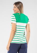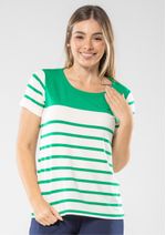 Blusa mangas curtas e decote redondo. Listrada em Verde e Off White. A clássica e versátil blusa listrada sempre será um sucesso. Aproveite! Composição da malha: Confeccionado em 92% Viscose e 8% Elastano. Medidas Aproximadas: P: 62cm Comprimento x 92cm Busto x 92cm Cintura x 102cm Quadril. M: 64cm Comprimento x 98cm Busto x 98cm Cintura x 108cm Quadril. G: 66cm Comprimento x 104cm Busto x 104cm Cintura x 114cm Quadril. GG: 68cm Comprimento x 110cm Busto x 110cm Cintura x 120cm Quadril. XL: 70cm Comprimento x 116cm Busto x 116cm Cintura x 126cm Quadril. Todos os dados informados são aproximados, do peso às medidas. ATENÇÃO PARA AS MEDIDAS. MODELAGEM AMPLA. *Modelo está usando o tamanho P*
