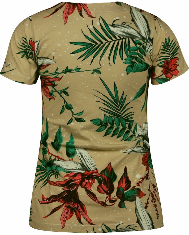 Blusa com decote redondo e mangas curtas. Malha da blusa estampada em tons de Vermelho e Verde, sobre o fundo Bege . Modelagem soltinha ao corpo. Moderna e confortável compõem diversos looks despojados. Arrase! Composição da malha: Confeccionado em 100% Algodão. Toque macio. Medidas Aproximadas: P: 63 x 92 x 94 x 106 cm (Altura, Busto, Cintura e Quadril). M: 65 x 98 x 100 x 112 cm (A, B, C, Q). G: 67 x 104 x 106 x 118 cm (A, B, C, Q). GG: 69 x 110 x 112 x 124 cm (A, B, C, Q). XL: 71 x 116 x 118 x 130 cm (A, B, C, Q). Todos os dados informados são aproximados, do peso às medidas. ATENÇÃO PARA AS MEDIDAS, POIS NOSSA MODELAGEM É AMPLA.