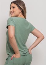 Blusa com decote em "V". Mangas curtas, compostas por detalhe de martingale e botão. Malha texturizada, na cor Verde. Elegante, confortável e Linda!!! Composição da malha: Confeccionado em 76% Viscose, 23% Algodão e 1% Elastano. Toque macio. Medidas Aproximadas: PP: 60 x 90 x 92 x 100 cm (Altura, Busto, Cintura e Quadril). P: 62 x 96 x 98 x 106 cm (Altura, Busto, Cintura e Quadril). M: 64 x 102 x 104 x 112 cm (Altura, Busto, Cintura e Quadril). G: 66 x 108 x 110 x 118 cm (Altura, Busto, Cintura e Quadril). GG: 68 x 114 x 116 x 124 cm (Altura, Busto, Cintura e Quadril). XL: 70 x 120 x 122 x 130 cm (Altura, Busto, Cintura e Quadril). Todos os dados informados são aproximados, do peso às medidas. Atenção para as medidas, pois nossa modelagem é AMPLA.