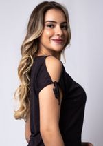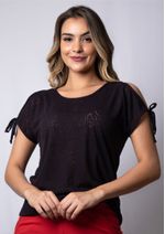 Blusa em malha devorê, na cor Preto, com decote redondo. Mangas curtas composta por detalhe de abertura e amarração. O tecido transparente proporciona um toque moderno, deixando a pele visível de forma sutil e charmosa. Modelagem da blusa, soltinha ao corpo. Composição da malha: Confeccionado em 50% Algodão e 50% Poliéster. Transparência e toque macio. Medidas Aproximadas: P: 62 x 98 x 94 x 100 cm (Comprimento, Busto, Cintura e Quadril). M: 64 x 104 x 100 x 106 cm (Comprimento, Busto, Cintura e Quadril). G: 66 x 110 x 106 x 112 cm (Comprimento, Busto, Cintura e Quadril). GG: 68 x 116 x 112 x 118 cm (Comprimento, Busto, Cintura e Quadril). XL: 70 x 122 x 118 x 124 cm (Comprimento, Busto, Cintura e Quadril). Todos os dados informados são aproximados, do peso às medidas. ATENÇÃO PARA AS MEDIDAS, POIS NOSSA MODELAGEM É AMPLA! "A malha devorê passa por um processo especial, onde alguns componentes são removidos, e o resultado final é bastante interessante. A malha fica leve, suave, com toque macio e uma a aparência rendada, contrastando relevos, desenhos e transparência. Confortável e elegante. Permita-se!"
