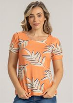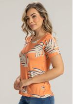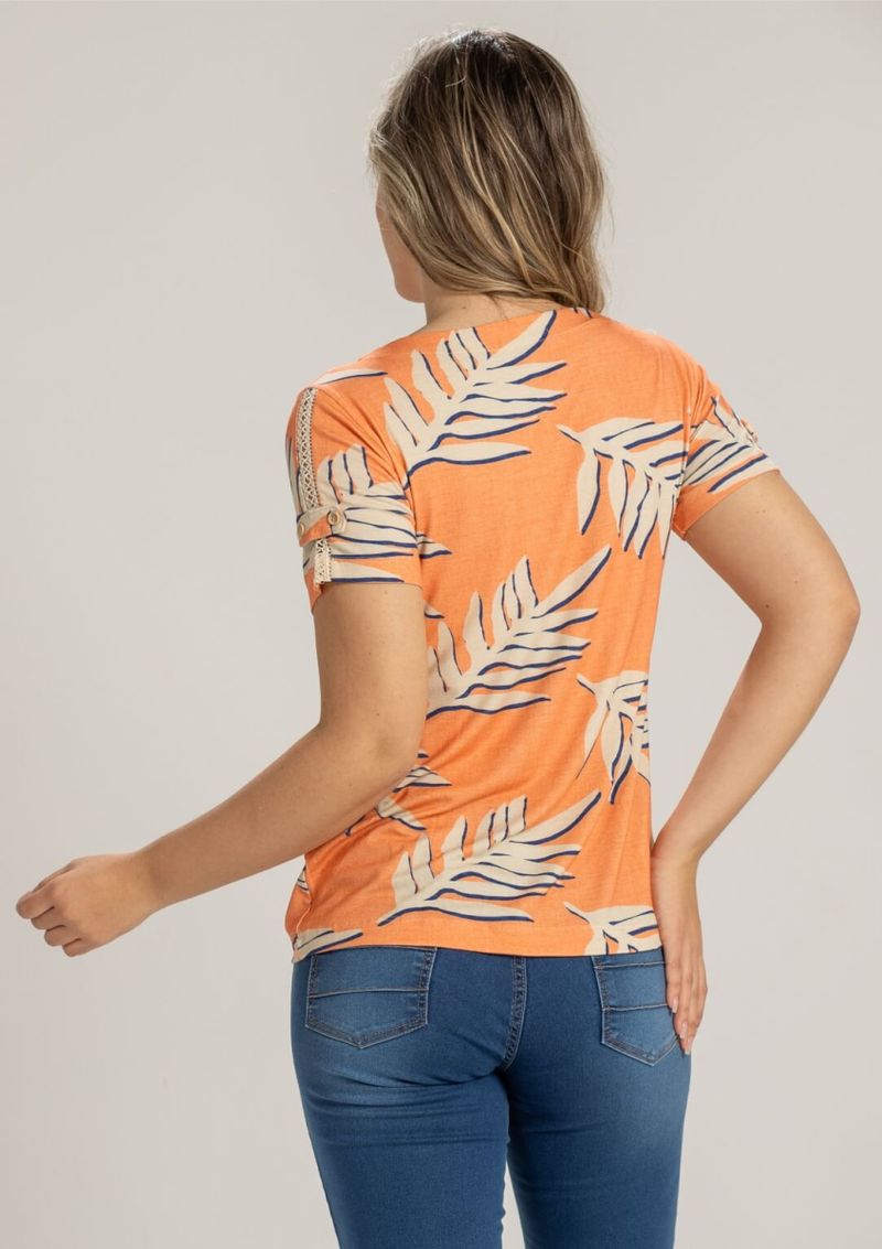 Blusa decote redondo e mangas curtas. Estampada com folhas sobre o fundo Laranja. Mangas com detalhe de entremeio e martingale com botão. O tecido em viscolycra é leve, confortável e tem um incrível caimento. Elegante, moderna e confortável. Aproveite!!! Composição da malha: Confeccionado em 96% Viscose e 4% Elastano. Medidas Aproximadas: PP: 60cm Comprimento x 84cm Busto x 86cm Cintura x 94cm Quadril. P: 62cm Comprimento x 90cm Busto x 92cm Cintura x 100cm Quadril. M: 64cm Comprimento x 96cm Busto x 98cm Cintura x 106cm Quadril. G: 66cm Comprimento x 102cm Busto x 104cm Cintura x 112cm Quadril. GG: 68cm Comprimento x 108cm Busto x 110cm Cintura x 118cm Quadril. XL: 70cm Comprimento x 114cm Busto x 116cm Cintura x 124cm Quadril. Todos os dados informados são aproximados, do peso às medidas. ATENÇÃO PARA AS MEDIDAS. MODELAGEM AMPLA.