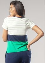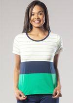 Blusa Feminina em Viscolycra. Mangas Curtas e decote redondo. Listras horizontais nas cores Azul Marinho, Off White e Verde. Confortável e linda. Permita-se! Composição da malha: Confeccionado em 95% Viscose e 5% Elastano. Medidas Aproximadas: P: 60cm Comprimento x 90cm Busto x 92cm Cintura x 100cm Quadril. M: 62cm Comprimento x 96cm Busto x 98cm Cintura x 106cm Quadril. G: 64cm Comprimento x 102cm Busto x 104cm Cintura x 112cm Quadril. GG: 66cm Comprimento x 108cm Busto x 110cm Cintura x 118cm Quadril. XL: 68cm Comprimento x 114cm Busto x 116cm Cintura x 124cm Quadril. Todos os dados informados são aproximados, do peso às medidas. ATENÇÃO PARA AS MEDIDAS. MODELAGEM AMPLA.