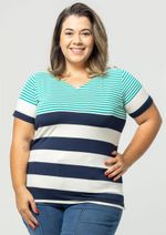 Blusa com decote "V" e mangas curtas. Malha Listrada em tons de Azul Marinho, Verde e Off White. Modelagem em viscolycra tecido que tem um caimento incrível e leve. Modelo confortável e de ótima qualidade! Confira! Composição da malha: Confeccionada em 95% Viscose e 5% Elastano. Medidas Aproximadas: P: 62cm Comprimento x 92cm Busto x 96cm Cintura x 102cm Quadril. M: 64cm Comprimento x 98cm Busto x 102cm Cintura x 108cm Quadril. G: 66cm Comprimento x 104cm Busto x 108cm Cintura x 114cm Quadril. GG: 68cm Comprimento x 110cm Busto x 114cm Cintura x 120cm Quadril. XL: 70cm Comprimento x 116cm Busto x 120cm Cintura x 126cm Quadril. Todos os dados informados são aproximados, do peso às medidas. ATENÇÃO PARA AS MEDIDAS. MODELAGEM AMPLA.