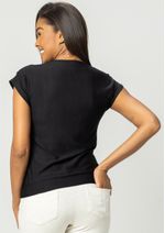 Blusa básica em malha texturizada na cor Preto. Decote redondo e mangas japonesas com detalhe de pregas e botões nos ombros. Modelo com punho na barra, vai bem com tudo. Confeccionada em malha texturizada: alta elasticidade, com toque super macio, que traz muito mais conforto. Opção versátil e elegante. Permita-se!!! Composição da malha: Viscolycra 97% Viscose e 3% Elastano. Medidas Aproximadas: P: 60cm Comprimento x 90cm Busto x 90cm Cintura x 92cm Quadril. M: 62cm Comprimento x 96cm Busto x 96cm Cintura x 98cm Quadril. G: 64cm Comprimento x 102cm Busto x 102cm Cintura x 104cm Quadril. GG: 66cm Comprimento x 108cm Busto x 108cm Cintura x 110cm Quadril. XL: 68cm Comprimento x 114cm Busto x 114cm Cintura x 116cm Quadril. Todos os dados informados são aproximados, do peso às medidas. ATENÇÃO PARA AS MEDIDAS, POIS NOSSA MODELAGEM É AMPLA! *Modelo está usando o tamanho P*