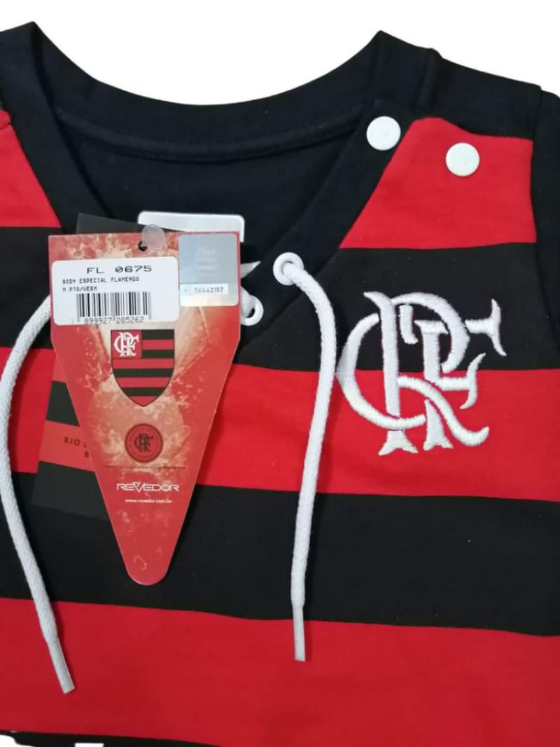 Body Bebê Flamengo Retrô Rubro Negro Oficial O Body Flamengo retrô foi desenvolvido para os pequenos que são torcedores desde o berço. Possui gola V com cordão, que remete aos uniformes retrôs do Flamengo. Com o body Retrô a nova geração de campeões fica devidamente fardada com as cores do seu time de coração. Garanta o futuro das arquibancadas e vista os mini torcedores com o primeiro dos muitos mantos que ainda virão. Características - Body retrô Flamengo. - Com o brasão do time bordado. - Tecido leve e confortável. Especificações Técnicas Material: Malha 100% algodão Idade Recomendada: Tamanho P - de 1 a 3 meses Tamanho M - de 3 a 6 meses Tamanho G - de 6 a 9 meses Conteúdo da Embalagem: 1 Body Recomendações de uso: Seguir corretamente as instruções de lavagem da etiqueta. Produto Oficial Licenciado.