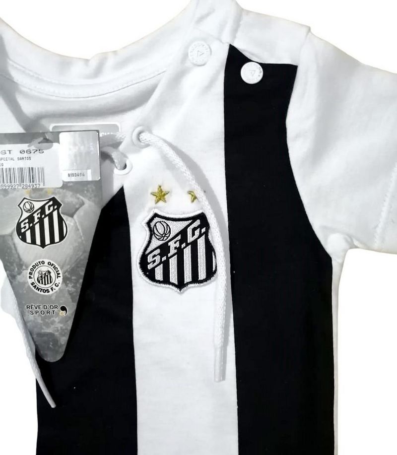 Body Bebê Santos Retrô Rubro Negro Oficial O Body Santos retrô foi desenvolvido para os pequenos que são torcedores desde o berço. Possui gola V com cordão, que remete aos uniformes retrôs do Santos. Com o body Retrô a nova geração de campeões fica devidamente fardada com as cores do seu time de coração. Garanta o futuro das arquibancadas e vista os mini torcedores com o primeiro dos muitos mantos que ainda virão. Características - Body retrô Santos. - Com o brasão do time bordado. - Tecido leve e confortável. Especificações Técnicas Material: Malha 100% algodão Idade Recomendada: Tamanho P - de 1 a 3 meses Tamanho M - de 3 a 6 meses Tamanho G - de 6 a 9 meses Conteúdo da Embalagem: 1 Body Recomendações de uso: Seguir corretamente as instruções de lavagem da etiqueta. Produto Oficial Licenciado.