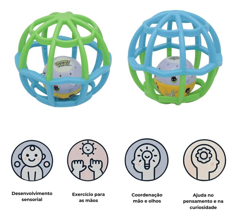Bola - Bola de atividade com som e luz looney tunes - OFFICIAL BRAND COMPAA Bola de Atividade Looney Tunes Baby da EBN Kids é um brinquedo interativo feito de plástico emborrachado atóxico, ideal para estimular o desenvolvimento dos bebês Com diversos sons divertidos e luzes que atraem a atenção dos pequenos, a bola promove a coordenação das mãos e olhos, o desenvolvimento sensorial e o exercício das mãosDetalhes: Certificado Pelos Órgãos Autorizados - OCP`S(Organismos De Certificação De Produtos) 005183/2024Características: Conteúdo da Embalagem: 1 Bola de atividade Material/Composição: Plástico Ref: EBN05063ZZZI32 Marca: EBN Kids Modelo: Looney tunes Idade Indicada: 2m+ Código de Barras: 7908509026909 Aviso: As cores podem variar entre as imagens mostradas acima e o produto Imagens meramente ilustrativasGarantia: 03 meses contra defeitos de fabricação