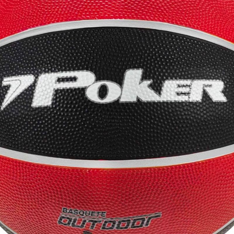 DescriçãoA Bola de Basquete Poker Outdoor 7 é desenvolvida especificamente para quem busca resistência e controle em partidas ao ar livre. Com um design vibrante e construção robusta, ela é ideal tanto para treinos quanto para jogos recreativos em superfícies mais abrasivas.Características Técnicas: Material: Confeccionada com borracha especial de alta resistência (contendo cerca de 30% de borracha natural), o que garante durabilidade em pisos como asfalto e concreto. Tecnologia High Frequency: Processo que assegura maior resistência aos impactos e mantém a integridade dos 8 gomos por mais tempo. Aderência Superior: Possui textura granulada (dots) e canaletas profundas que proporcionam uma pegada firme, facilitando dribles, passes e arremessos precisos, mesmo com as mãos suadas. Câmara de Butil: Oferece excelente retenção de ar, mantendo a calibragem ideal por muito mais tempo. Miolo Lubrificado e Removível: Facilita a manutenção e garante maior vida útil à válvula.MODELO INDICADO PARA CRIANÇAS ACIMA DE 12 ANOS E ADULTOS!Modelo: Basket Outdoor 7;Marca: Poker;Tecnologias: High Frequency;Composição: Borracha;Modalidade: Basquete;Tabela de MedidasTAMANHO 7Circunferência: 75 a 78cm;Peso: 600 a 650g;