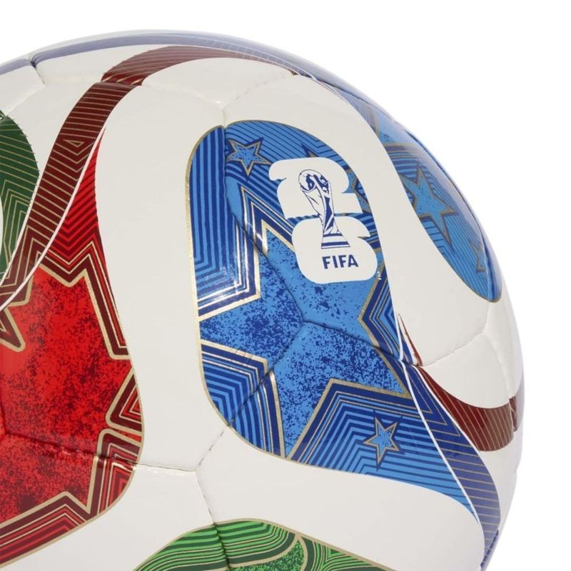 Descrição:A Adidas apresenta a Bola Futsal Adidas Copa do Mundo 2026 Trionda Pro Sala, indicada para quem busca entrar no clima do Mundial dos EUA, Canadá e México brilhando nos seus treinos e partidas em quadra. Feita com materiais resistentes, a bola exibe design moderno inspirado nos países anfitriões e conta com costura à mão. Batizada de 'Trionda', o nome da bola da Copa do Mundo da Adidas de 2026 é uma combinação de 'Tri', em referência aos três países anfitriões, e 'Onda', em referência à icônica onda "la ola", representando a união e o movimento dos países anfitriões. O modelo apresenta as cores dos países anfitriões (EUA, Canadá e México) e é predominantemente branca com detalhes em vermelho, verde e azul com padrões vibrantes inspirados nos países que sediarão a maior festa do futebol mundial. INFORMAÇÕES TÉCNICAS Revestimento externo: 60% poliéster (reciclado), 40% poliuretano Circunferência aproximada: 62 - 64 cm Costura: Sim, à mão Indicado para: Futsal Baixo rebote Pressão recomendada: 0,5 a 0.6 BAR / 7.2 a 8.7 PSI Certificação: FIFA Quality Pro Miolo: Removível Gênero: Unissex