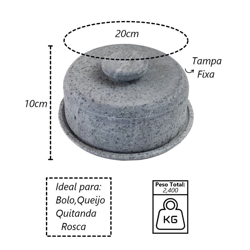 Utilidades DomésticasAcessórios para Servir Prato para BoloBoleira e Queijeira Gourmet Tampa de Pedra Sabão P 10x20cm