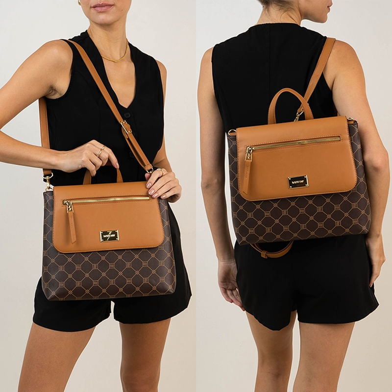 Bolsa Mochila 2em1 Feminina Rafitthy 28.16128 Monograma Bolsa 2em1 ideal para o dia a dia ou para um passeio. Material leve e resistente. Possui alça de mão e transversal, fechamento em zíper, bolsos externo e interno. Produto 100% nacional. Medidas: 30x25x12cm (LarguraxAlturaxProfundidade) Material: Poliuretano. Garantia: 90 dias contra defeitos de fábrica.