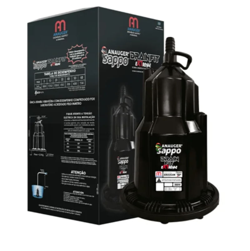 Anauger Drainfit Extreme: A Bomba Submersível Multifuncional para Caixa D'Água, Reservatórios e Cisternas;A Anauger Drainfit Extreme é a solução definitiva para o bombeamento e drenagem de água em diversas aplicações;Projetada para ser multifuncional, esta bomba submersível garante o gerenciamento eficiente de água, seja para sua caixa d'água, grandes reservatórios ou cisternas;Aplicações Otimizadas da Drainfit Extreme:Caixa d'Água Limpa e Segura: Com a Drainfit Extreme, você mantém sua caixa d'água livre de acúmulos indesejados, como sedimentos e sujeira, assegurando a qualidade da água que você utiliza;Ideal para a manutenção preventiva e para evitar problemas com entupimentos;Gestão Eficiente de Grandes Volumes de Água: Para reservatórios e cisternas, a Anauger Drainfit Extreme oferece um desempenho superior na gestão de água;Evite desperdícios, otimize o uso dos recursos hídricos e mantenha o funcionamento eficiente de sistemas de armazenamento de grande porte.Invista na Anauger Drainfit Extreme e garanta eficiência, qualidade e versatilidade no manejo da água em sua residência ou propriedade.Especificação TécnicaVazão máxima: 1800 litros/hora;Potência Nominal: 360W;Temperatura máxima da água: 35ºC;Dimensões: Altura 346mm e Diâmetro 220mm saída 3/4¿ polegadas;Certificação: ABNT NBR ISO 9001;Altura manométrica máxima: 60m (elevação);Bombeamento de água sem resíduos sólidos;Frequência: 50 e 60 HZ;Isolação Elétrica: Classe H;Grau de proteção: IP68;Proteção contra choque elétrico: Classe II.Voltagem: 220vSKU: 10170005