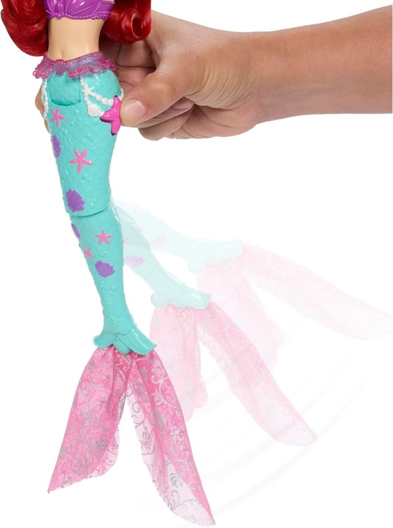 -A boneca sereia Disney Princesa Ariel com Golfinho e Sebastian celebra a vida no fundo do mar! -Inspirada na personagem animada do filme A Pequena Sereia da Disney, a boneca Ariel pode "nadar" com suas amigas. -Basta apertar os quadris da boneca para que sua cauda de sereia se mova para cima e para baixo, como se ela estivesse realmente nadando! -Dois adoráveis amigos animais - Sebastian, o caranguejo, e um golfinho que também pode esguichar água - podem se prender ao braço dela e se revezar em aventuras de natação pelo mar. -A boneca não pode ficar em pé sozinha. As cores e as decorações podem variar. -Qualquer interação com água deve ser feita sob a supervisão de pais ou responsáveis. -Inclui 1 boneca da moda, 1 esguicho de banho, 1 figura e 4 acessórios. Características: Marca - Mattel Cód. JCF39