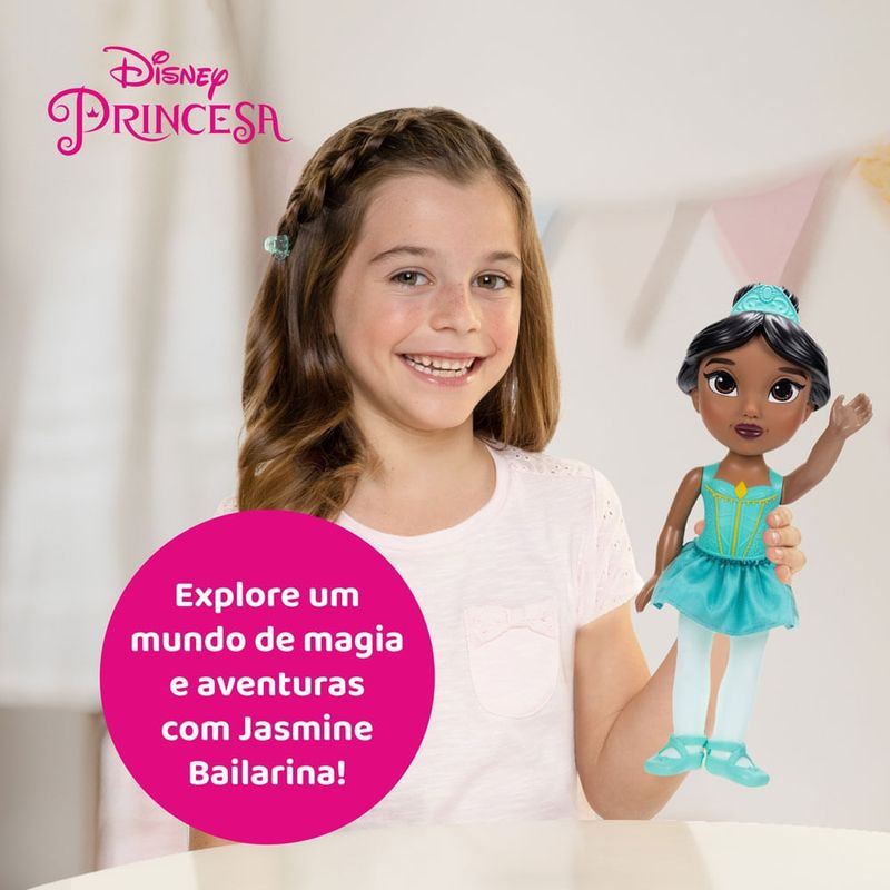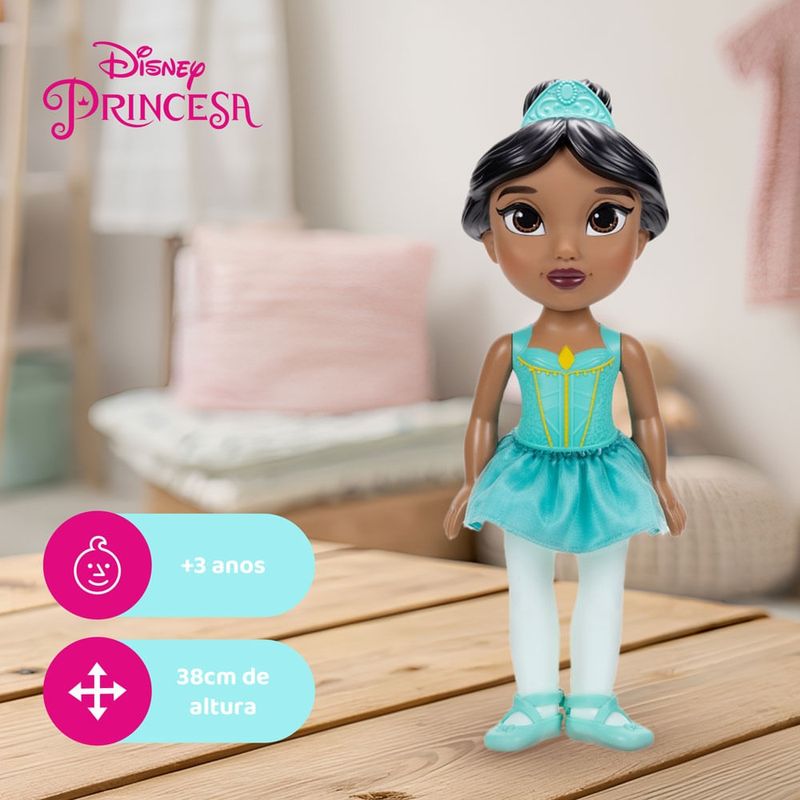 Para toda menina que sonha com aventura,existe uma Princesa Disney para mostrar que é possível!Viva momentos mágicos com sua própria Princesa Disney! Explore o mundo ideal das histórias de Aladdin com a princesa Jasmine, pronta para ser a protagonista onde quer que você esteja.A Boneca Bailarina Princesas Disney Jasmine tem 38 cm de altura, olhos pintados e saia, estilo tutu, em tecido. Uma companheira encantadora para as brincadeiras do dia a dia. Leve Jasmine para onde você for e descubra lugares mágicos juntas!Imagens Meramente Ilustrativas Informações importantesO que são produtos Remanufaturados?São produtos originais, restaurados por um profissional na própria fábrica e, por isso mesmo, estão em perfeito funcionamento. A vantagem desses produtos são os preços mais baixos e a segurança na compra, já que são cobertos por garantia de 90 dias contra defeitos.
