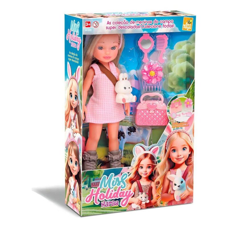 Seja bem-vindo(a) a Loja NIVALMIX A boneca Miss Holiday Coelho da Bee Toys foi criada para encantar com sua doçura e delicadeza, trazendo um charme especial para as brincadeiras das crianças. Com um design encantador, ela veste uma linda roupinha temática inspirada em coelhinhos, repleta de detalhes que transmitem fofura e despertam a imaginação. Leve, macia e feita no tamanho ideal para ser abraçada e carregada para todos os lugares, a Miss Holiday Coelho se transforma em uma verdadeira companheira para aventuras e momentos de carinho. Além de divertida, é uma boneca que estimula o faz de conta, a criatividade e o cuidado, ajudando as crianças a desenvolverem habilidades sociais e emocionais enquanto criam histórias cheias de ternura. Produzida pela Bee Toys, marca reconhecida pela qualidade e atenção aos detalhes em seus brinquedos, essa boneca é uma excelente opção para presentear em aniversários, datas especiais ou simplesmente para tornar o dia a dia mais alegre e mágico. Especificações: • Material: Vinil, Tecidos e Polipropileno • Marca: Bee toys • Referência: 1037 • Garantia do Fornecedor: 3 meses contra defeitos de fabricação • Validade: Indeterminada • Registro Certificação do Inmetro: 004415/2020 OCP:0006 • Indicação: Não recomendável para crianças menores de 3 (três) anos. • Dimensões do produto (aproximadas): 34 x 11,5 cm Item Incluso: • 01 Boneca • 01 Bolsa de bichinho • 01 Kit de acessórios