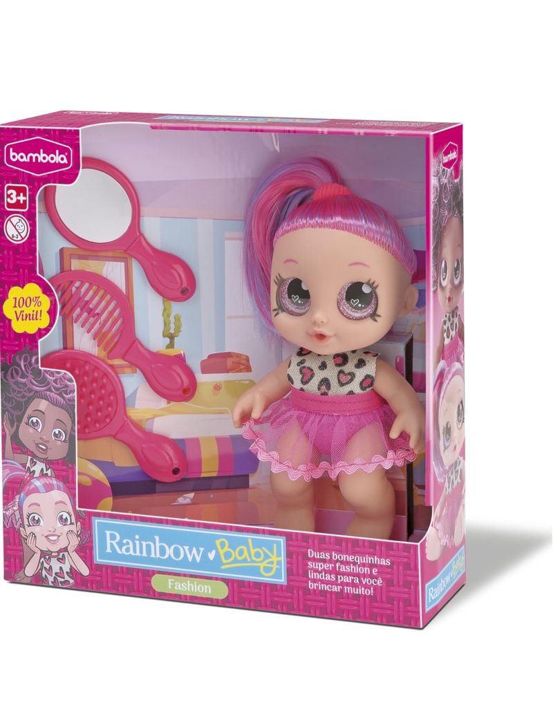 A nova coleção de bonecas super fofinhas e com cabelinhos coloridos, Rainbow Baby! Elas são lindas e super fashion e vem com acessórios! Vem com pentinho, escova e espelho. DADOS TÉCNICOS Marca: Bambola Referência: 858 Coleção: Rainbow Baby Idade Recomendada: + 3 ANOS Código de Barras: 7899871708589 Dimensões aproximadas da embalagem: 27 X 27 X 9 Dimensões aproximadas do Produto: 21 X 12 X 7 cm Composição: Vinil, Polipropileno e Tecido Inmetro Registro 009289/2022 OCP0098 Garantia: Contra Defeitos de Fabricação Todas as informações divulgadas são de responsabilidade do fabricante/fornecedor. Imagens Meramente Ilustrativas. Observe atentamente a idade recomendada para o brinquedo. Pode conter partes pequenas que podem ser engolidas e perigosas. A Jéssica Presentes está no mercado a mais de 20 anos, com a missão de proporcionar um ótimo atendimento aos seus clientes, sempre em busca de novidades na área de brinquedos e papelaria.