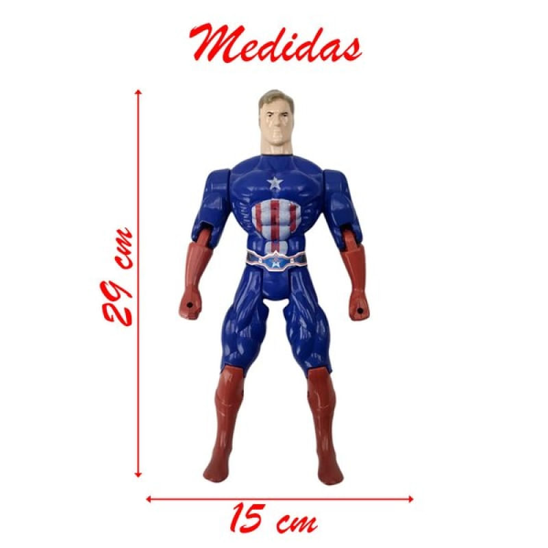 Boneco Capitão América 29cm Articulado - 1 Boneco Herói Aventureiro 29CM Articulados: Sim Altura: 29cm Material: Plástico Articulados nos braços, pernas e cabeça. INMETRO CE-BRI/IDEAL 0065/21-01 NM 300/2004 Características Gerais do Produto: Garantia: • Garantia do site - 1 Mês