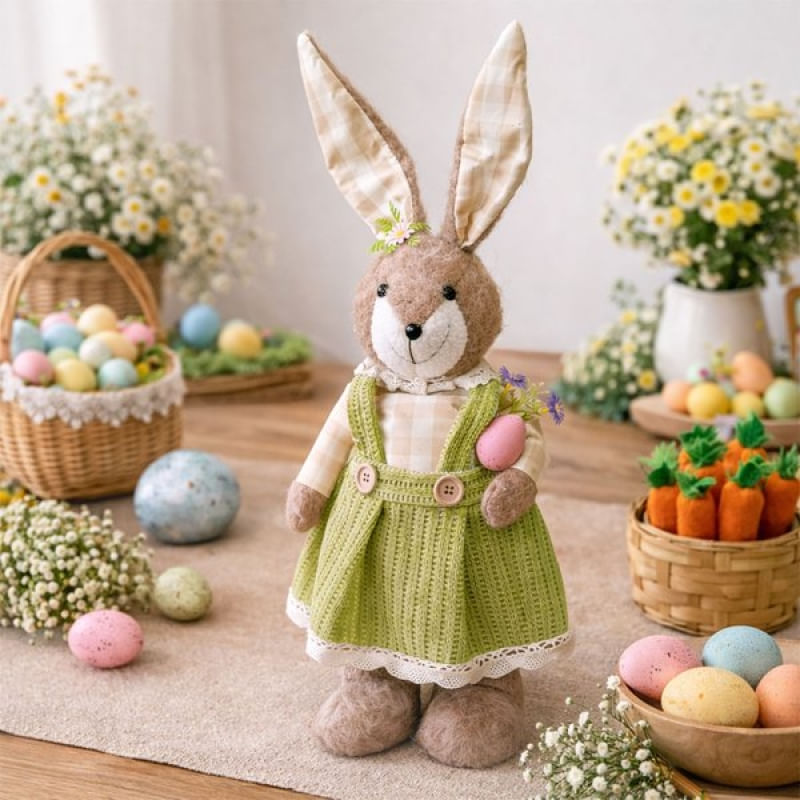 Boneco Coelha Com Pernas Ajustáveis Decoração Páscoa De 60cm - Deixe sua decoração de Páscoa ainda mais charmosa com esta linda boneca coelha decorativa, com pernas ajustáveis que permitem diferentes posições, trazendo versatilidade e destaque ao ambiente Detalhes do produto: Tamanho: Altura 60cm x Largura 20cm x Comprimento 15cm Diferencial: pernas ajustáveis Uso: decoração de Páscoa, vitrines, eventos e ambientes internos Estilo: decorativo, delicado e temático Embalagem: 1x Boneca Coelha Com Pernas Ajustáveis 60cm Características Gerais do Produto: • Material: Pelúcia • Modelo: Boneco de Pascoa • Cor: Verde • Dimensões aproximadas: Altura 60cm x Largura 20cm x Comprimento 15cm Garantia: • Garantia do site - 1 Mês