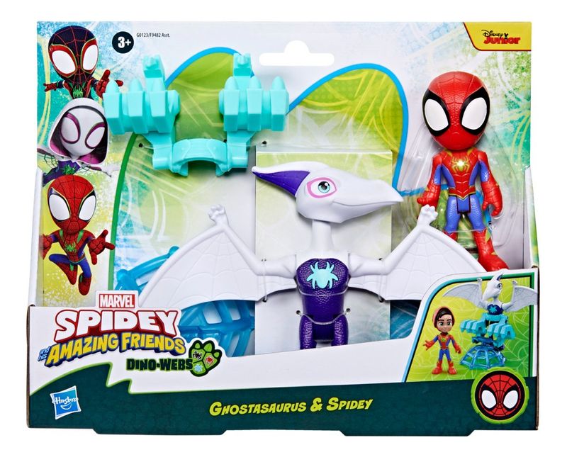 Este conjunto da Marvel inclui uma figura articulável do Homem-Aranha Spidey de 10 cm e uma figura articulável do Homem-Aranha Ghostasaurus de 12,5 cm. A figura do herói apresenta um traje atualizado do Homem-Aranha com design de teias de dinossauro e uma máscara que esconde sua identidade. Levante a máscara da figura do Aranha para revelar seu rosto.