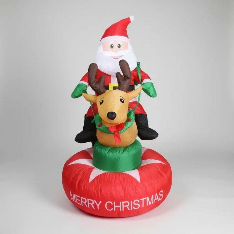 Boneco Inflavel Natal Papai Noel Grande Rena Natalina Decoraçao Shopping Loja Vitrine Casa Predio CondominioTransforme sua decoração natalina em um verdadeiro espetáculo de luz e alegria com este Papai Noel inflável gigante de 1 Metro e 80cm montado em uma linda rena iluminada por LEDs brilhantes!Um design encantador e cheio de detalhes, este inflável cria instantaneamente uma atmosfera festiva e acolhedora, perfeita para destacar seu espaço interno ou externo. A iluminação LED embutida dá um toque mágico durante a noite, atraindo todos os olhares e espalhando o espírito natalino por onde passa.Crie momentos inesquecíveis com a presença mágica deste Papai Noel inflável na rena com LED. É impossível não sorrir ao vê-lo iluminando sua decoração e encantando adultos e crianças!CaracterísticasCor: VermelhoMaterial: PoliesterLuzes Led InternaTempo para inflar: De 5 a 10 minutosInflador automáticoVoltagem: 110-220vPapai Noel SimpáticoRena NatalinaDecoraçao de NatalEnfeite Merry ChristmasFácil de montarDecoraçãoFim de AnoDimensões AproximadasAltura: 1 Metro e 80cmLargura: 90cmConteúdo da Embalagem1 Papai Noel inflável montado na Rena1 Fonte3 Meses de Garantia Contra Defeitos de Fabricação.*2218G Mod: SU-INFLA5