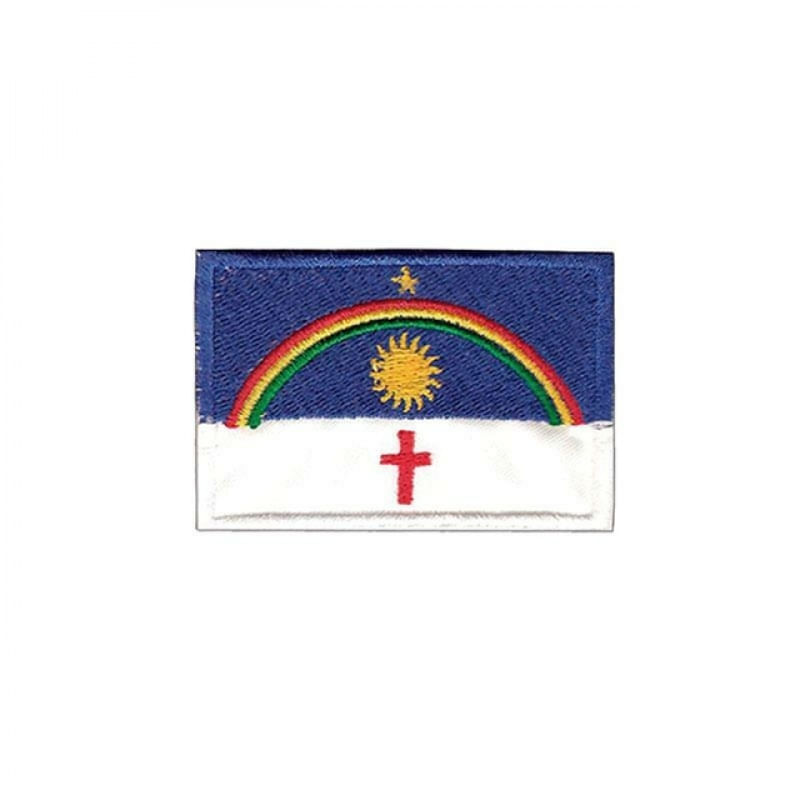 Bordado Termocolante Bandeira PernambucoTermocolantes são apliques bordados que podem ser agregados a peças de confecção em geral por meio de calor (prensa térmica ou ferro de passar roupa).-Algumas vantagens desse método:-O lado avesso da peça não se altera como no caso do bordado na peça já pronta. -Fácil aplicação do bordado. Veja como é simples: -Modo de aplicação com o Ferro de passar roupa:-1.Ajuste o ferro de passar na temperatura ALGODÃO, posicione o aplique sobre a peça. Proteja-a com um pano para evitar a amarelamento e então pressione o ferro sobre o bordado sem movimentá-lo por 60s.-2.Repita a operação do lado avesso, espere esfriar e está pronto.-3.Evite lavar a peça por um período de 24 horas.Obs.: Alguns tecidos que tenham recebido tratamento com impermeabilizantes ou antiaderentes não são adequados a esse tipo de colagem. Com a aplicação correta como descrita acima, esse processo tem durabilidade por tempo indeterminado. Dimensões Aproximadas:Largura: 5,5 cmComprimento: 8 cmPeso: 8 g