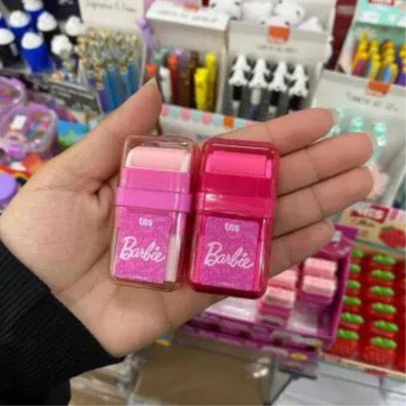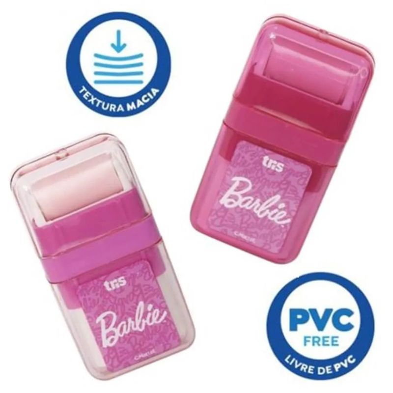 BORRACHA ESCOLAR ROLINHO BARBIE - TRIS Com inspiração na icônica boneca Barbie, a borracha rolinha da Tris apresenta um design charmoso e encantador! Perfeita para o seu kit de materiais escolares! O formato rolinho da Borracha Escolar Tris Barbie Rolinho é projetado para limpar resíduos de maneira eficaz. Com sua forma cilíndrica permite uma aplicação uniforme e prática, removendo marcas de lápis com facilidade e sem esforço. Este design inovador garante que a correção seja não apenas eficiente, mas também limpa, mantendo suas folhas impecáveis e prontas para o uso. Com fórmula desenvolvida para ser suave e atóxica, garante segurança durante o uso escolar.Formato Rolinho: Limpeza Eficiente de Resíduos ***APÓS A COMPRA, MANDAR MENSAGEM INFORMANDO QUAL COMBINAÇÃO DE CORES DESEJA, CASO TENHAMOS EM ESTOQUE, LHE ENVIAREMOS***