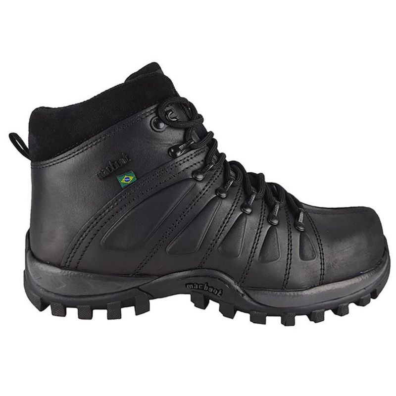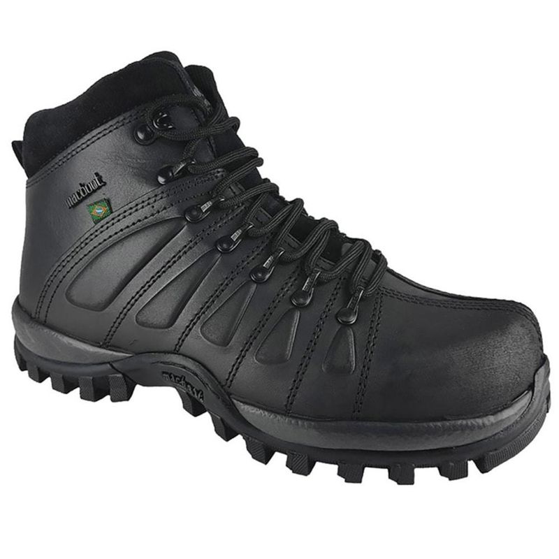 DescriçãoA Bota Macboot Uirapuru Preta Emborrachado Adulto é reconhecida como o produto mais bonito da marca, além se ser seguro e confortável. Também pode ser utilizado como equipamento de E.P.I, pois possui o selo CA0001 aprovado pela segurança do trabalho, e nada impede ser utilizado no dia-a-dia.Ela é perfeita para você que gosta de se aventurar e busca um modelo resistente e confortável, além do alto desempenho que ela pode proporcionar.Foi desenhada para quem busca um calçado prático, leve e perfeito para ser usado no dia a dia ou durante a prática esportiva. Revestida em materiais de extrema qualidade e super-resistentes, possui cabedal projetado com a anatomia dos pés dos brasileiros, respeitando padrões de largura e altura. Confortável e super macia, possui interior revestido em tecido de tramas abertas, o que impede o acúmulo do suor e te deixa livre contra fungos e bactérias nocivos à saúde. Aprovada pela associação brasileira de ortopedia, conta com sistema de blindagem que absorve com agilidade e precisão os impactos fortes, evitando torções e pequenos ferimentos. Ande em terrenos acidentados com segurança! A Bota também oferece amortecimento, estabilidade, aderência e flexibilidade. Viu quanta coisa boa em um único produto? Compre a sua agora mesmo! Modelo: Uirapuru 02;Cor: Preto;Gênero: Masculino;Marca: Macboot;Tecnologia: Macstab, MacDry, Anatomic System;Tipo de Pisada: Neutro; Composição: Cabedal: couro emborrachado; forro: nylon; palmilha: eva expandido; solado: borracha tratorada; cadarço: políester.Tabela de MedidasComprimento aproximado da palmilha interna:Tamanho 37: 24,60cm;Tamanho 38: 24,40cm;Tamanho 39: 26,10cm;Tamanho 40: 26,90cm;Tamanho 41: 27,90cm;Tamanho 42: 29,10cm;Tamanho 43: 29,80cm;Tamanho 44: 30,60cm;Tamanho 45: 31,30cm;Tamanho 46: 31,90cm;