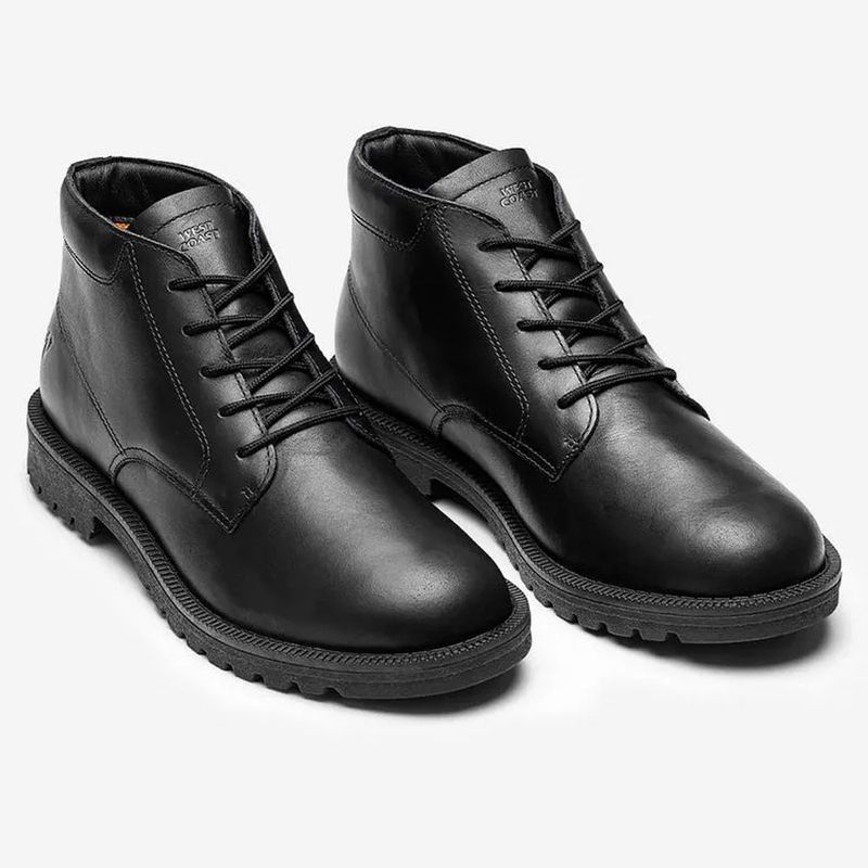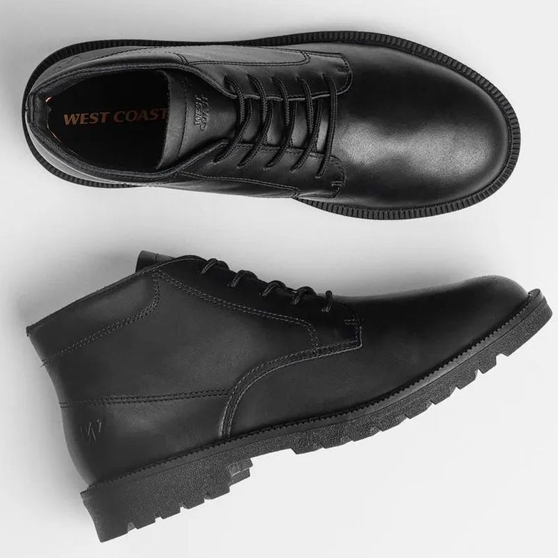 Bota Masculina Rustic Black West Coast WC-90-04 Eleve seu estilo com a Bota Rustic da West Coast. Buscando uma bota que combine elegância e conforto para o seu dia a dia? A West Coast apresenta a Bota Rustic WC 90, a bota ideal para quem não abre mão de um visual impecável sem renunciar ao bem-estar. Com design clássico e atemporal, a Bota Rustic é perfeita para quem busca um calçado versátil e sofisticado. Confeccionada em couro vegetal de alta qualidade, ela garante durabilidade, maciez e respirabilidade, ideal para te acompanhar em diversas ocasiões, desde trabalho até eventos sociais. Características técnicas: Cabedal em couro vegetal macio e respirável, palmilha em E.V.A. macia, para maior conforto e higiene, sola em material TR leve e resistente, que garante aderência e durabilidade e fechamento em cadarço para ajuste perfeito