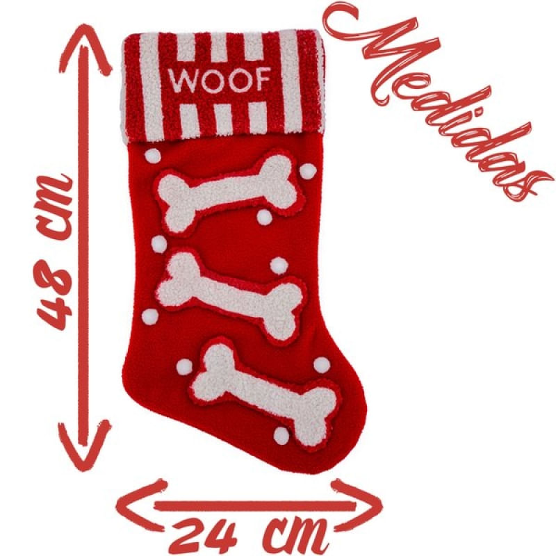 Bota Meia Natalina Decoração Tecido Woof Woof 48cm - O Natal é tempo de celebrar o amor, comemorar a vida com novas esperanças, novos sonhos e também é a hora de deixar a casa mais bonita para receber a família nesta data tão importante. Você poderá realizar um Natal com toque de charme e bom gosto que contagiará seus convidados com o espírito natalino, deixando a sua casa decorada de uma forma diferente e apropriada para a data mais esperada do ano. Indicações de uso: - Decoração natalina - Ambiente corporativo e residencial Descrição Técnica: Material: Tecido Altura: 48 Cm Largura: 24 Cm Contém: 1 Peça Características Gerais do Produto: • Material: Tecido • Cor: Branco; Vermelho Garantia: • Garantia do site - 1 Mês