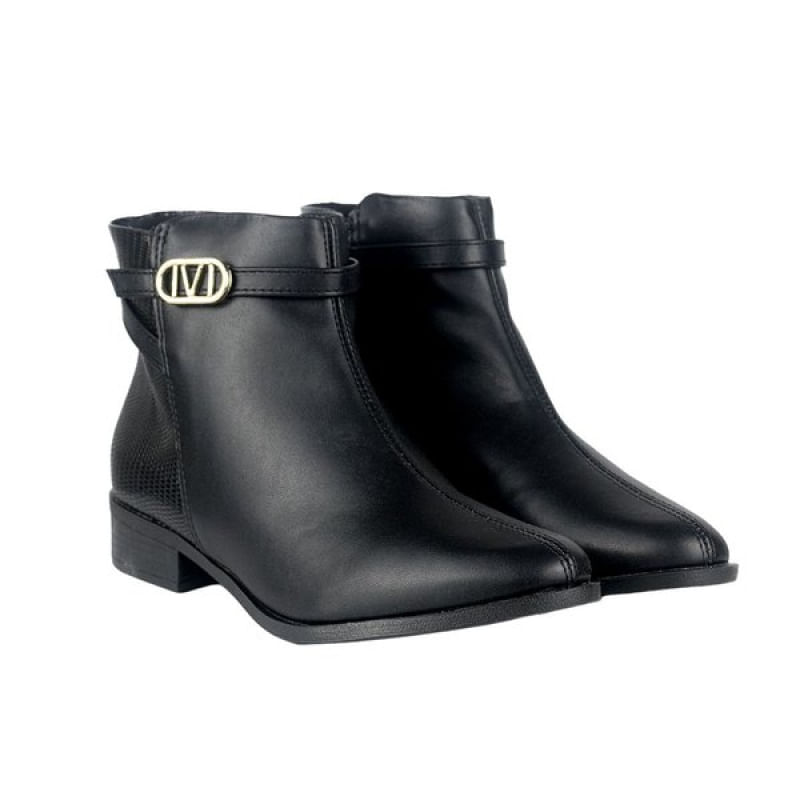Bota Via Uno Cano Curto Salto Bloco Preto Preto - 34 - Bota Via Uno de cano curto com bico fino e salto baixo. Sofisticação e conforto para o dia a dia. Características Gerais do Produto: • Marca: Via Uno • É Esportivo: Não • Esportes Relacionados: Não Informa • Estilo: Casual • Gênero: Feminino • Indicado Para: Dia a Dia • Altura do Cano: Curto • Tipo: Bota • Tipo de Ajuste: Calce Facil • Altura do Salto: 03 Centímetros • Tipo de Salto: Grosso • Material: Sintético • Material Do Solado: PVC • Material Interno: Sintético • Palmilha: EVA • Entre Sola: Textil Garantia: • Garantia contra defeitos de fabricação do fornecedor por 90 dias