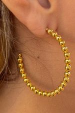 Este brinco argola grande apresenta bolinhas douradas, banhado em ouro 18k, oferecendo um visual moderno e elegante. O design das bolinhas adiciona um toque de sofisticação e charme ao seu visual, tornando esta peça ideal para ocasiões especiais. Perfeito para quem busca uma joia única e estilosa, este brinco é uma escolha ousada e elegante. Compre agora e continue arrasando no visual a onde você for!!! ESSE ACESSÓRIO É HIPOALERGÊNICO E NÍQUEL FREE. DADOS TÉCNICOS: MEDIDA: 4cm PESO: 6,6g MATERIAL: Banhado em Ouro 18k DICA: Para manter sua peça sempre com brilho evite o contato dela com lugares úmidos e molhados, exemplo piscinas, mar e durante o banho. GARANTIA: 1 ANO.