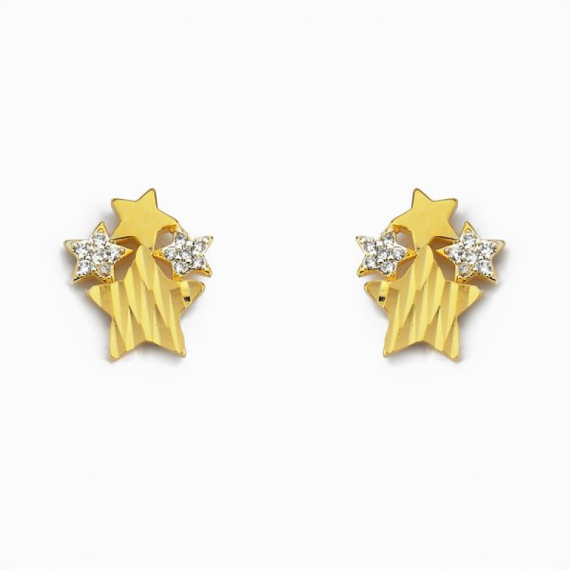 Brinco com Estrelas e detalhe em Zircônia Folheado a Ouro 18k - Brinco Delicado banhado a ouro 18k. Com um brilho delicado nas diversas formas de estrelas. Características Gerais do Produto: • Cor Metal: Dourado • Dimensão: Comprimento:1,5cm - Largura:1cm Peso: 1,8gr • Fechamento Brinco: Tarraxa Acompanha o produto: • 01- Par de Brinco com Estrelas Garantia: • Contra defeito de fabricação